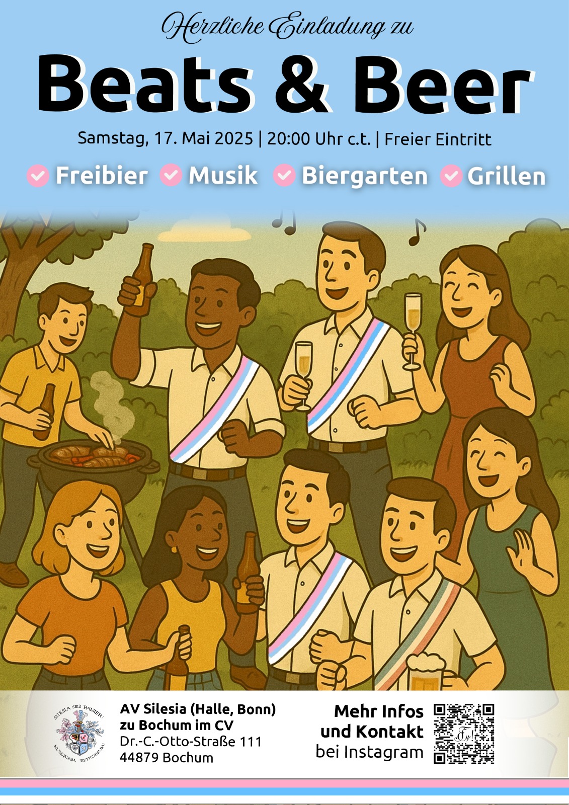 herzliche Einladung zu unserer Party "Beats & Beer" am kommenden Samstag auf dem Silesenhaus mit Musik und Tanz für alle Altersgruppen. Für Verpflegung und Getränke ist gesorgt.